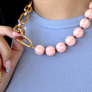 DQ® Perline in acrilico 16 mm con strisce rosa chiaro-rosa pesca