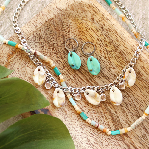 Grazie alle nuovissime conchiglie cipree in resina non ti serve molto per creare dei gioielli meravigliosi. Per creare degli orecchini puoi utilizzare dei componenti oppure puoi scegliere degli orecchini creoli. Grazie agli anellini puoi aggiungere le conchiglie e gli altri ciondoli agli orecchini. Le possibilità per creare delle collanine sono infinite. Grazie alle catenine puoi creare delle bellissime collane e appenderci le conchiglie cipree in resina. Ti piacciono i look da spiaggia? Infila le perline Miyuki o di pietra naturale sul filo macramè con una conchiglia ciprea in resina e stringi un nodo scorsoio all’estremità. Alle estremità della collana puoi appendere anche un bel ciondolo oppure una perlina. Vuoi creare un set completo? Infila sull’elastico una serie di perline in pietra naturale di colori coordinati.