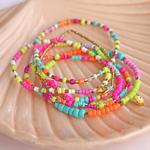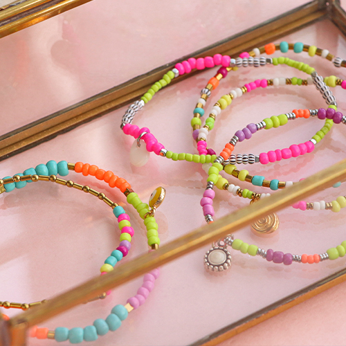 Questa serie di perline di vetro rocailles ha bellissimi colori neon super trendy per quest'estate! Con il filo elastico e la colla per bigiotteria, puoi creare dei magnifici bracciali. Usa perline rocailles di varie dimensioni e combinale con perline di ematite per una collana simpatica. Per cordoncini per occhiali da sole, usa la coda di topo. Infila le perline su un filo e poi intreccia vari fili l'uno con l'altro fino a raggiungere la lunghezza desiderata.