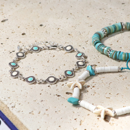 • Perline di ceramica turchese a forma di stella marine biancastro beige