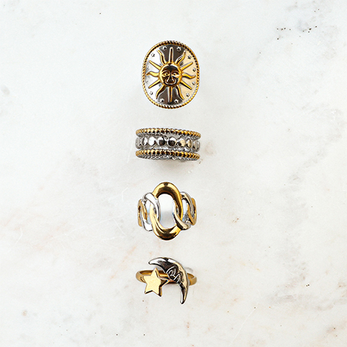 • Anelli in acciaio inossidabile stella e luna oro-argento