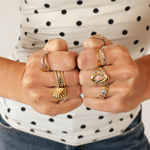 Anelli in acciaio inossidabile conchiglia argento-oro