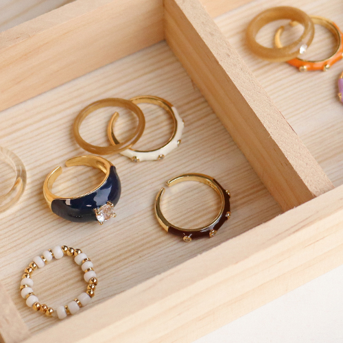Indossare tanti anelli è sempre di tendenza! Combina questi simpatici modelli in ottone con anelli della collezione già pronti da indossare o con anelli creati da te con le perline. Le combinazioni sono infinite!