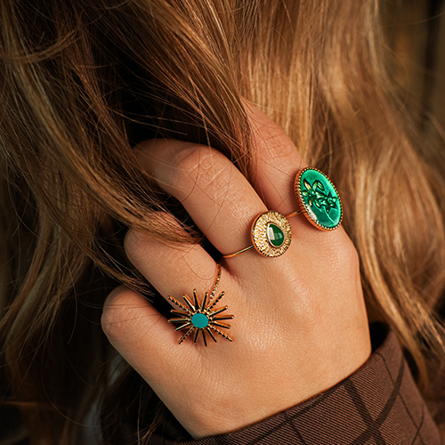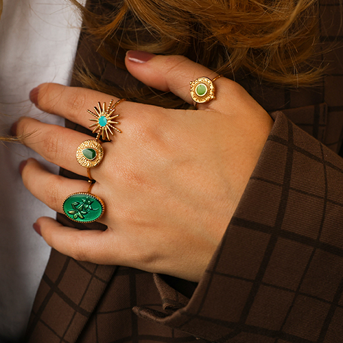 • Anelli in acciaio inossidabile smalto tonda con goccia oro-verde scuro