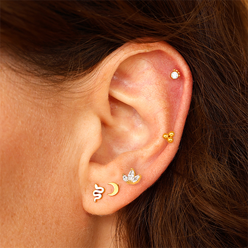 Abbiamo aggiunto nuovi eyecatcher alla nostra collezione: piercing per orecchio minimalisti in acciaio inossidabile con forme di fiore, serpente, cuore e luna. Eleganti, senza tempo e perfetti da abbinare alle nostre altre collezioni. Qual è il tuo preferito?