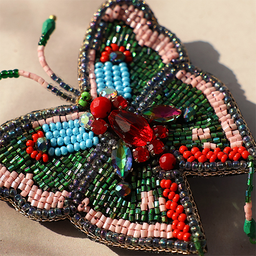 Broches farfalla rosso-verde-rosa