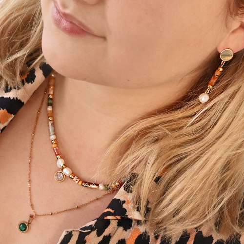 Puoi realizzare bigiotteria fantastica con la nuova collezione di perline in pietra naturale. La collezione è composta da perline a forma di rondella e tubo che possono essere utilizzate per tutti i tipi di bijoux diversi. Con queste perline abbiamo creato bracciali, collane e orecchini. Abbinando le perline in pietra naturale con perline di metallo DQ rotonde si ottiene un effetto giocoso. Abbiamo abbinato le perline in pietra naturale con perle d'acqua dolce, perché queste perle sono anche un prodotto naturale e hanno una bellissima lucentezza. Infila le perline su filo metallico per un risultato fantastico.