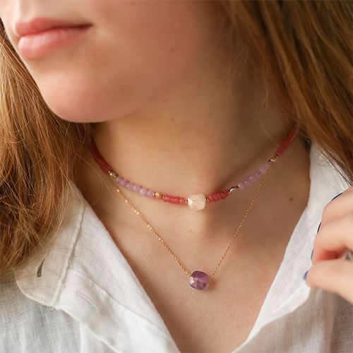 • Perline in pietra naturale 4 mm rosa viola