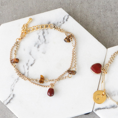 Trova qui l’ispirazione per creare gioielli con i nuovissimi ciondoli e distanziatori in pietra naturale! Con questi favolosi articoli potrai creare tanti gioielli bellissimi. Crea, ad esempio, un bracciale con due fili di catena rolò su cui infilare sia un pendente in pietra naturale che perline in pietra naturale. Combina i due elementi a tuo gusto per ottenere un risultato perfetto. Ovviamente, puoi anche infilare le perline in pietra naturale su un chiodino a occhiello aggiungendo poi i distanziatori senza usare la catena rolò. Oppure puoi creare un bracciale charms partendo da una catena rolò a maglie larghe. Alle maglie puoi appendere ciondoli in pietra naturale, perline in pietra naturale oppure ciondoli in metallo DQ. Vuoi completare il set? Crea allora anche una lunga collana di catena rolò con più ciondoli al centro.