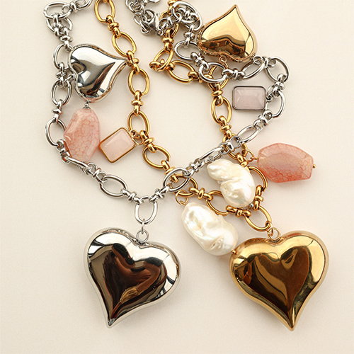 Ciondoli in acciaio inossidabile conchiglia cuore oro-bianco