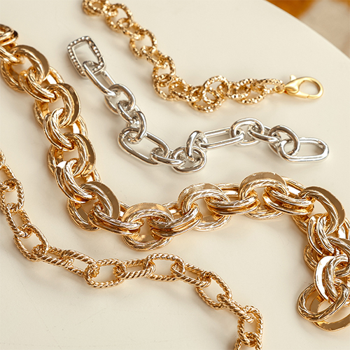 Questa nuova collezione di catene a rolò in alluminio è spessa, leggera e stilosa. I grandi anelli in oro e argento sono perfetti per creare collane, bracciali e orecchini chunky. Mix & match per un set statement unico che cattura subito l’attenzione!