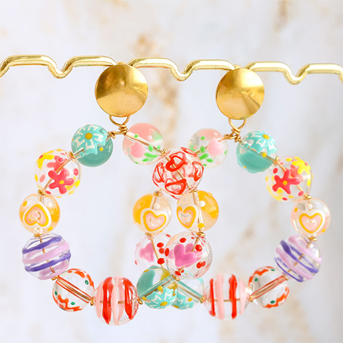 Questa nuova serie di perline di vetro è composta da perline dipinte a mano con bellissimi motivi come ciliegie, cuori e fiori. Puoi fissare le perline di vetro con altre perline colorate della collezione su orecchini a perno o a cerchio per creare