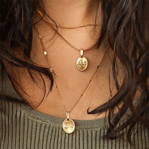 Questa nuova collezione di ciondoli in acciaio inossidabile con numeri d'angelo è unica ed è stata progettata dal nostro team di designer. Sul retro di ogni ciondolo troverai il significato del numero. Disponibile con finitura dorata o argentata, perfetto per creare collane uniche. Non te lo perdere!
