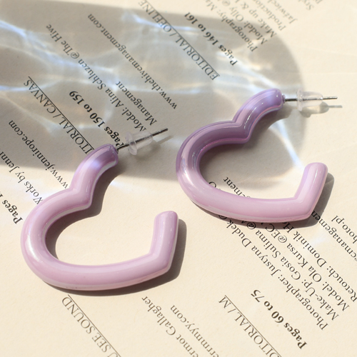 Orecchini alla moda a cuore viola lilla-effetto perlato