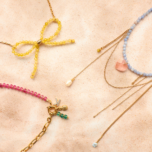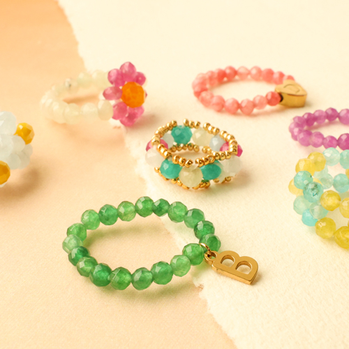 Questa nuova collezione di perline in pietra naturale offre una bellissima varietà di colori. Le perline sono incorporate in anelli e collane con motivi floreali e forme di fiocco. Combina filo elastico, perline miyuki, perle e ciondoli iniziali per anelli giocosi, o crea collane eleganti con catena a rolò, ciondoli in acciaio inossidabile, iniziali e strati di catena a rolò.