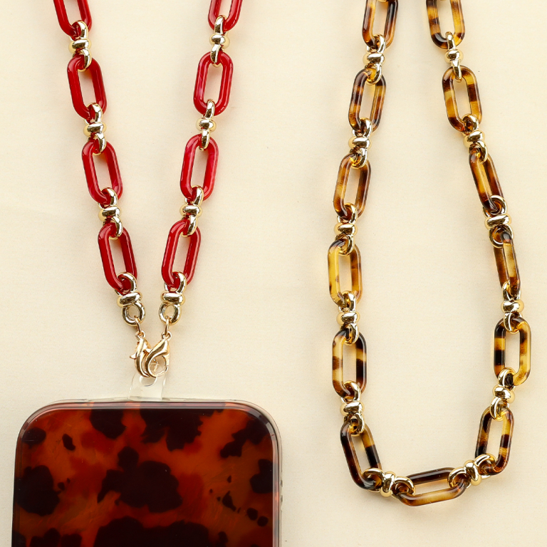 • Cinturino da polso trendy per cellulare in acrilico marrone oro-oro
