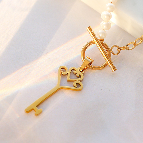 Questi ciondoli a forma di chiave sono perfetti per collane e orecchini. Fissa i ciondoli a un orecchino a cerchio con un anellino apribile e abbinali a una catena a rolò. Utilizza le varie collane già pronte della collezione a cui potrai appendere i ciondoli o crea la tua collana di tendenza con perle d'acqua dolce e catena a rolò, completandola con una chiusura a T in acciaio inossidabile. Appendi il ciondolo alla chiusura e indossala sul davanti.