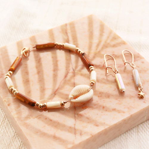 Bigiotteria estiva con perline di conchiglia tubo