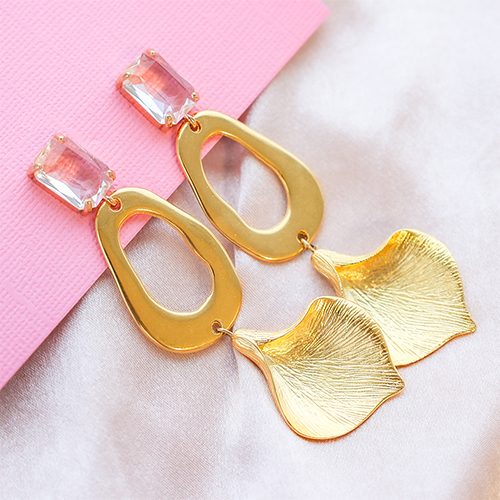 Orecchini con Cristalli con anellino rettangolo cristallo-oro