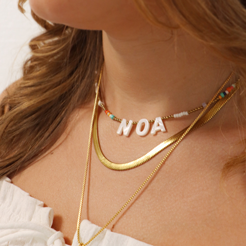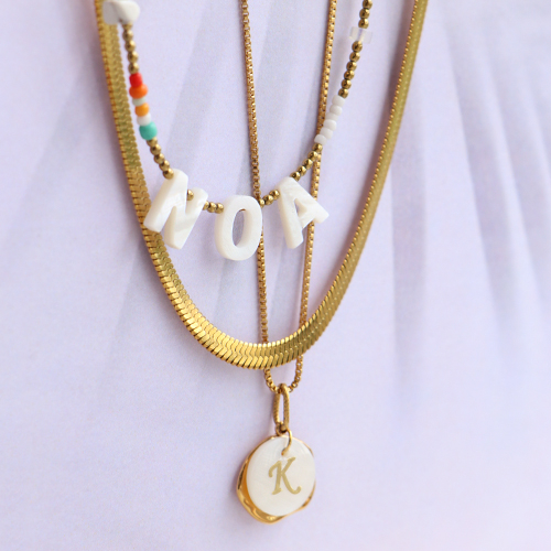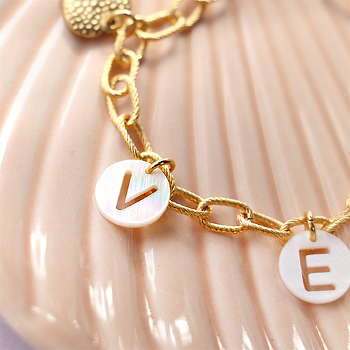 Perline di conchiglia lettera A oro-bianco (colore naturale)