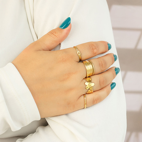Questa pratica gamma di anelli in acciaio inossidabile è composta da anelli con disegni diversi, come un fiore e un cuore. Tutti gli anelli sono disponibili in oro e argento e sono regolabili. Una serie bellissima da aggiungere alla tua collezione di gioielli!