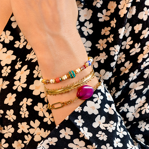 Questa primavera i gioielli boho sono di gran moda! Approfitta questa tendenza e realizza collane di diverse lunghezze da sovrapporre. Per un autentico look boho, utilizza il filo coda di topo e le perline in pietra naturale. Un bel colpo d'occhio è un braccialetto di catena a rolò robusto a cui si possono appendere diversi ciondoli. Nella tua collezione primaverile non possono mancare orecchini lunghi e pendenti e un cordino per telefono con perline grandi!