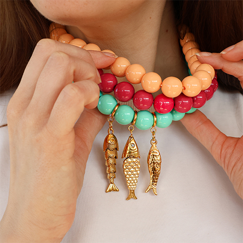 • Ciondoli in acciaio inossidabile pesce oro-blue-trasparente