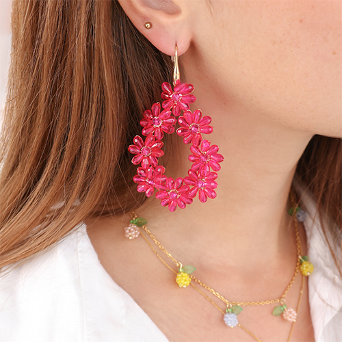 • Ciondoli sfaccettati fiore oro-rosa rosso