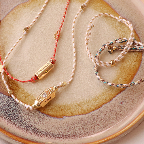 Usa il cordino alla moda intrecciato per bracciali singoli o doppi da completare facilmente con una chiusura con perline scorrevole. Questa chiusura ha una gomma all'interno, che tiene il cordino ben fissato. Crea collane con perline o ciondoli DQ e aggiungi una message bead C.U.S® per un messaggio speciale. Puoi tagliare facilmente il cordino con la pinza micro grip a taglio laterale Beadsmith