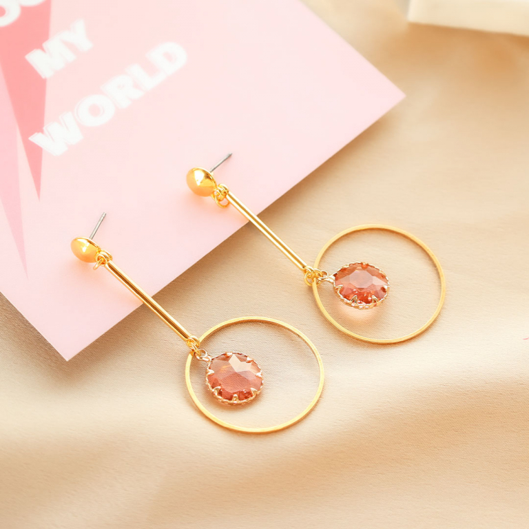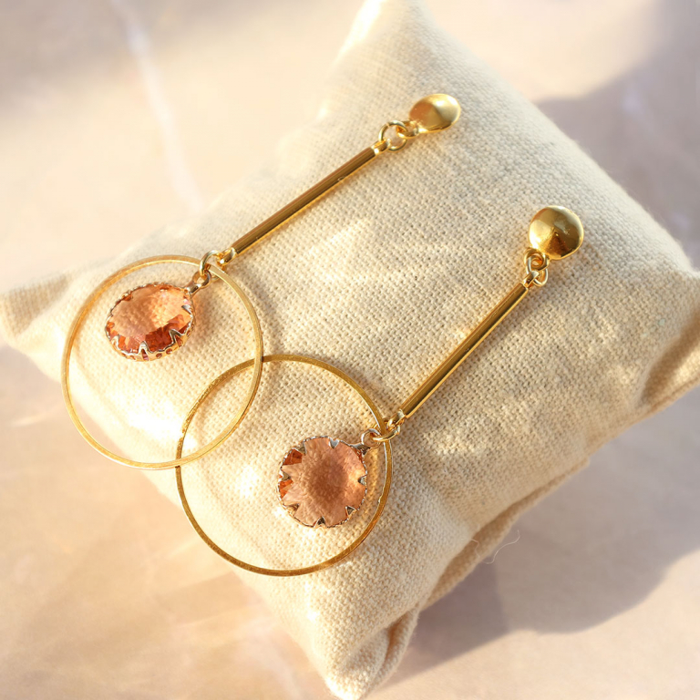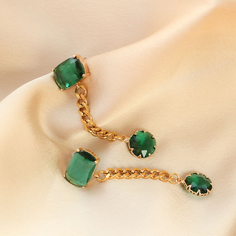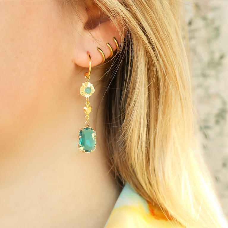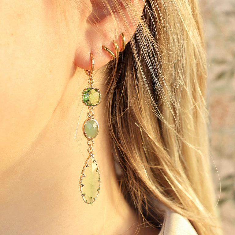 • Orecchini con Cristalli con anellino rettangolo verde-oro