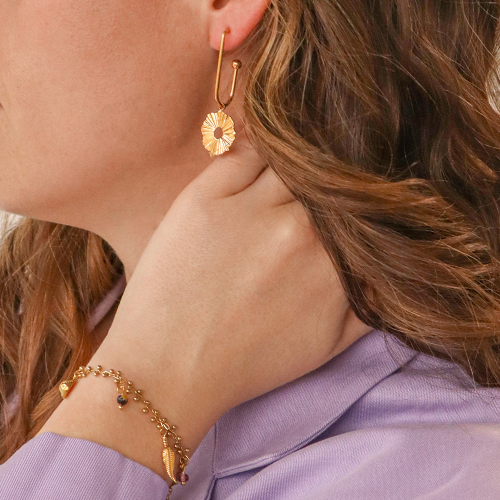 Orecchini in acciaio inossidabile con anellino oro