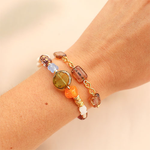 Una collezione brillante, disponibile in diverse forme, dimensioni e colori. Perfetta per creare braccialetti colorati che donano un tocco di raffinatezza in più. Queste perline vengono realizzate pressando vetro liquido in stampi di metallo e successivamente lucidate con cura, ottenendo perline lisce e piene di carattere, dal design semplice e lineare a quello più dettagliato e raffinato.