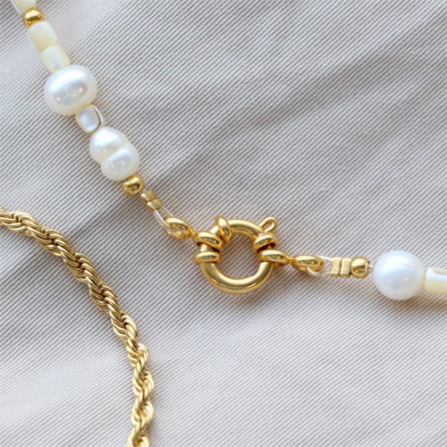 Vorresti sapere come abbiamo realizzato queste collane con catena a rolò? Continua a leggere e lasciati ispirare! I gioielli a maglie grosse potrebbero sembrare impegnativi, ma abbinando la catena a rolò a perle d’acqua dolce potrai creare un look elegante e alla moda. Le collane a maglie grosse si abbinano perfettamente a una collana con catena rolò a maglie sottili con una bella conchiglia o perla d’acqua dolce. Vuoi completare il set? Una collana di sola catena a rolò e componenti per bigiotteria in acciaio inox è perfetta per arricchire e variare il tuo set di bigiotteria. Ti piace utilizzare più tipi di perline? Allora crea una collana con perline di conchiglia tubo, perle d’acqua dolce e smiley. Realizza anche una bella cintura con la catena a rolò! Mettiti all’opera e realizza le creazioni più belle!
