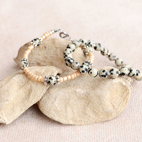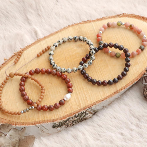 Cerchi ispirazione per la tua prossima collezione di gioielli? Queste perline in pietra naturale ti ispireranno sicuramente! Realizza splendide collane abbinando le perline in pietra naturale alle perline DQ e alle perline a rondella in pietra naturale per farne un pendente utilizzando un chiodino. Completa la collana con un’allungatrice. Per realizzare collane, utilizza la pratica tavoletta creativa in modo da determinare la giusta lunghezza della collana! Realizza bracciali con il filo elastico o la coda di topo e abbina le perline in pietra naturale alle perle d’acqua dolce e alle perline DQ o in acciaio inox.
