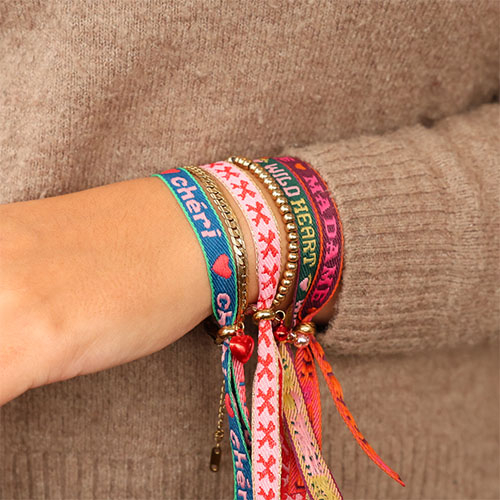 BY31® Nastro con testo "Chéri" blu scuro-rosa chiaro-rosso-verde