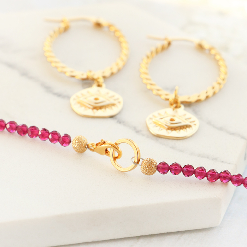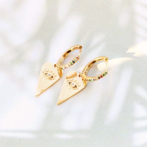 • Orecchini a cerchio con cubic zirconia arcobaleno con anellino oro
