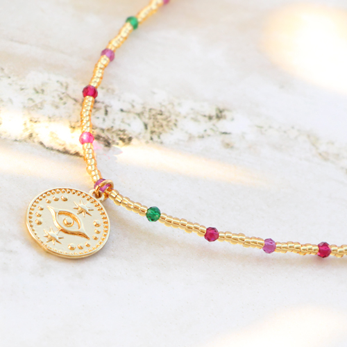 • Metallo TQ in ottone ciondolo occhio della provvidenza strass oro