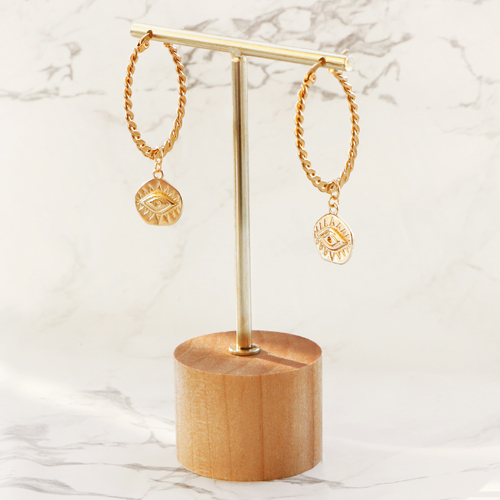 Espositore per bigiotteria a 'T' con supporto di legno per orecchini (3 pz.) naturale (colore naturale di legno)