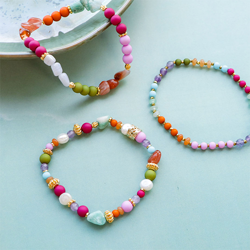 Crea bellissimi bracciali e cordini per telefono di tendenza con queste perline in acrilico dai caldi colori autunnali. Utilizza un filo elastico per i bracciali e alterna le perline in acrilico con, ad esempio, perline in pietra naturale, perline in metallo DQ, perline cilindriche in acrilico, perline di ematite sfaccettate e perle d'acqua dolce. Crea un cordino per telefono con la coda di topo e perline in metallo DQ. Completa il cordino per telefono con anelli portachiavi colorati della stessa tonalità delle perline in acrilico.
