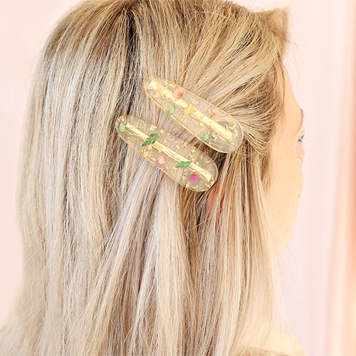 Accessori fermaglio a scatto con fiori secchi viola rosa verde-oro