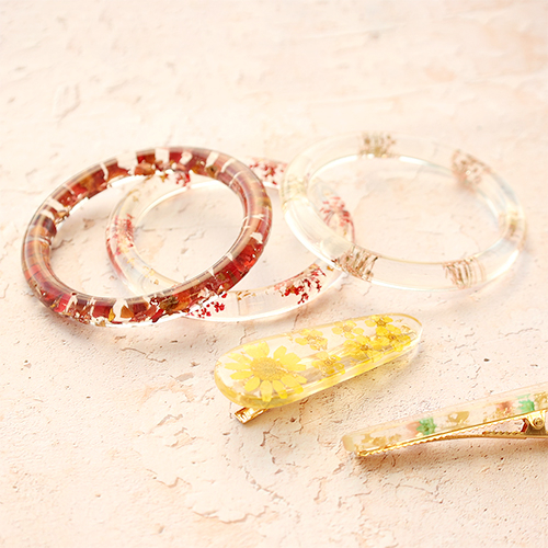 Bracciali con fiori secchi e fermagli per capelli abbinati