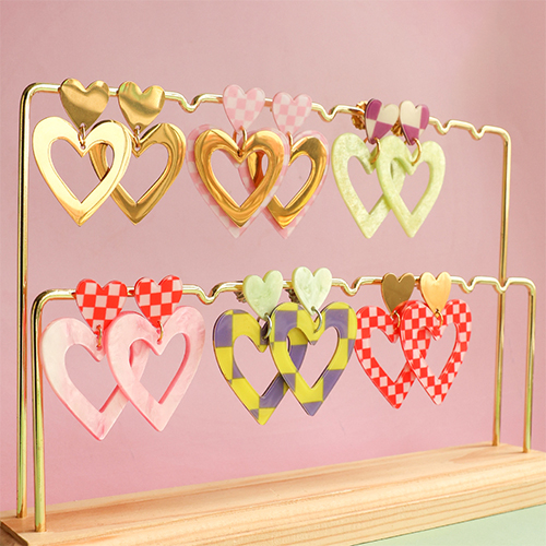 Pendenti in resina cuore viola-verde lime