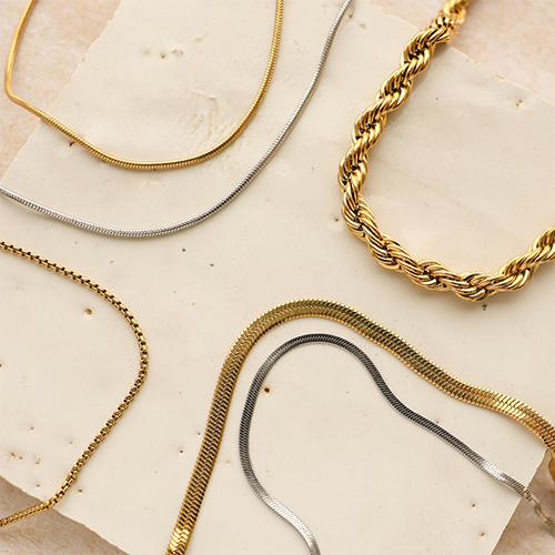 Scopri il fascino della nostra nuova collezione di collane e bracciali in acciaio inossidabile. Disponibili in diverse varianti eleganti, come quelle rotonde e ritorte. Perfetti da combinare o abbinare  con i tuoi altri gioielli per creare una splendida collezione primaverile.