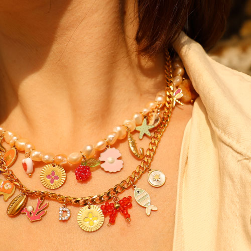 Questa nuova collezione di ciondoli in acciaio inossidabile con smalto è un must-have! Disponibili in varie forme come ostrica, fiore, pesce e stella marina. Questi ciondoli sono ideali per mescolare e abbinare per creare sia collane che bracciali