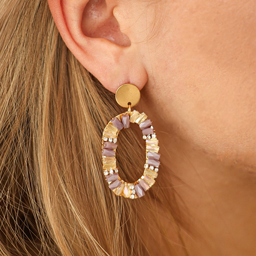 Orecchini sfaccettati ovale lilla-transparente-oro