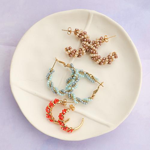 • Orecchini alla moda perline spirale multicolore-oro