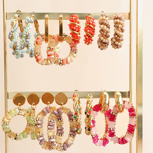 Orecchini alla moda perline spirale multicolore-oro