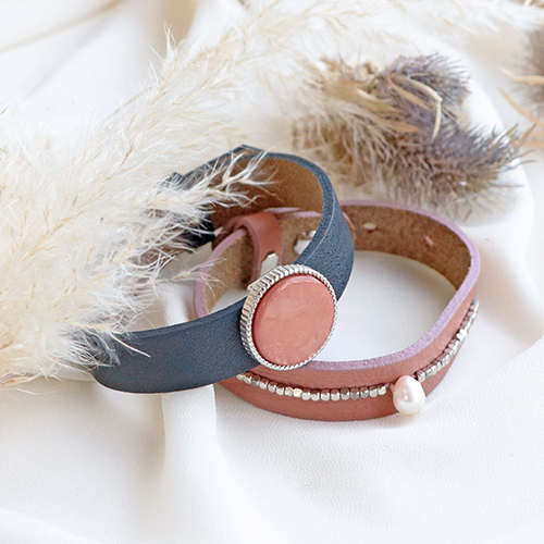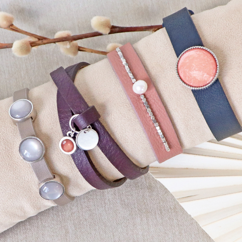 Puoi facilmente creare tu stesso le più belle combinazioni con i bracciali Cuoio. Per prima cosa, scegli il tuo bracciale Cuoio preferito, in larghezza e colore. Poi personalizzalo. Applica un cabochon di tua scelta in un castone. Lo potrai agganciare facilmente sui passanti del bracciale. Aggiungi un tocco extra al tuo bracciale, appendendo dei ciondoli all’anellino di chiusura. Che ne dici di un ciondolo in metallo DQ o di una perla d'acqua dolce? Un vero creativo può decorare il bracciale con perle d'acqua dolce piatte e perline in pietra naturale che puoi cucire a mano sul bracciale. Così facendo, potrai personalizzarlo al massimo. Crea la tua collezione secondo il tuo stile!