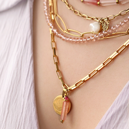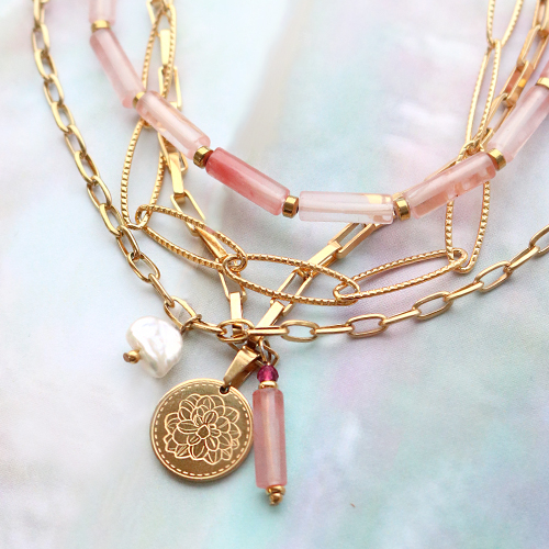 • Perline in pietra naturale tubo rosa