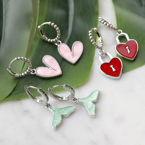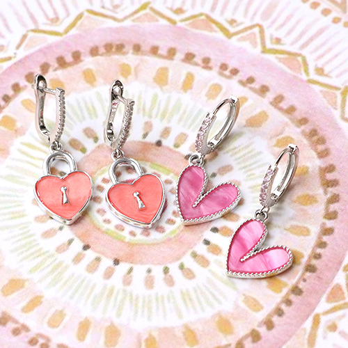 • Pendenti in resina chiusure cuore argento-rosso corallo